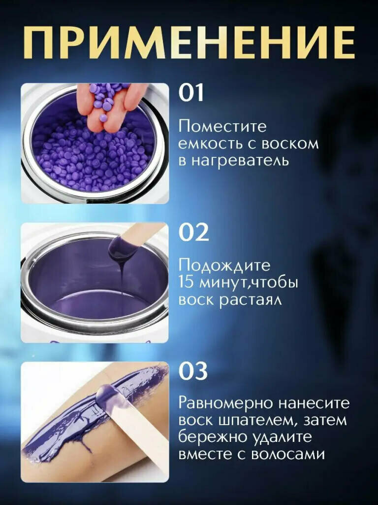 | Способ применения | вставьте банку с воском в нагреватель. Вставьте кабель питания в розетку. Поверните кнопку по часовой стрелке до предела вправо к максимальной температуре. После 10, 15 минут поверните кнопку против часовой стрелки к середине. Подождите 10 минут, чтобы воск нагрелся равномерно. В течение всей косметологической процедуры, устройство будет поддерживать воск в постоянной температуре |