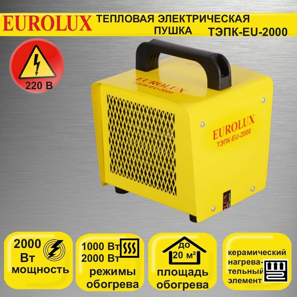Тепловая пушка Eurolux ТЭПК-EU-2000, электрическая, 220 В, 25/1000/2000 Вт, керамика