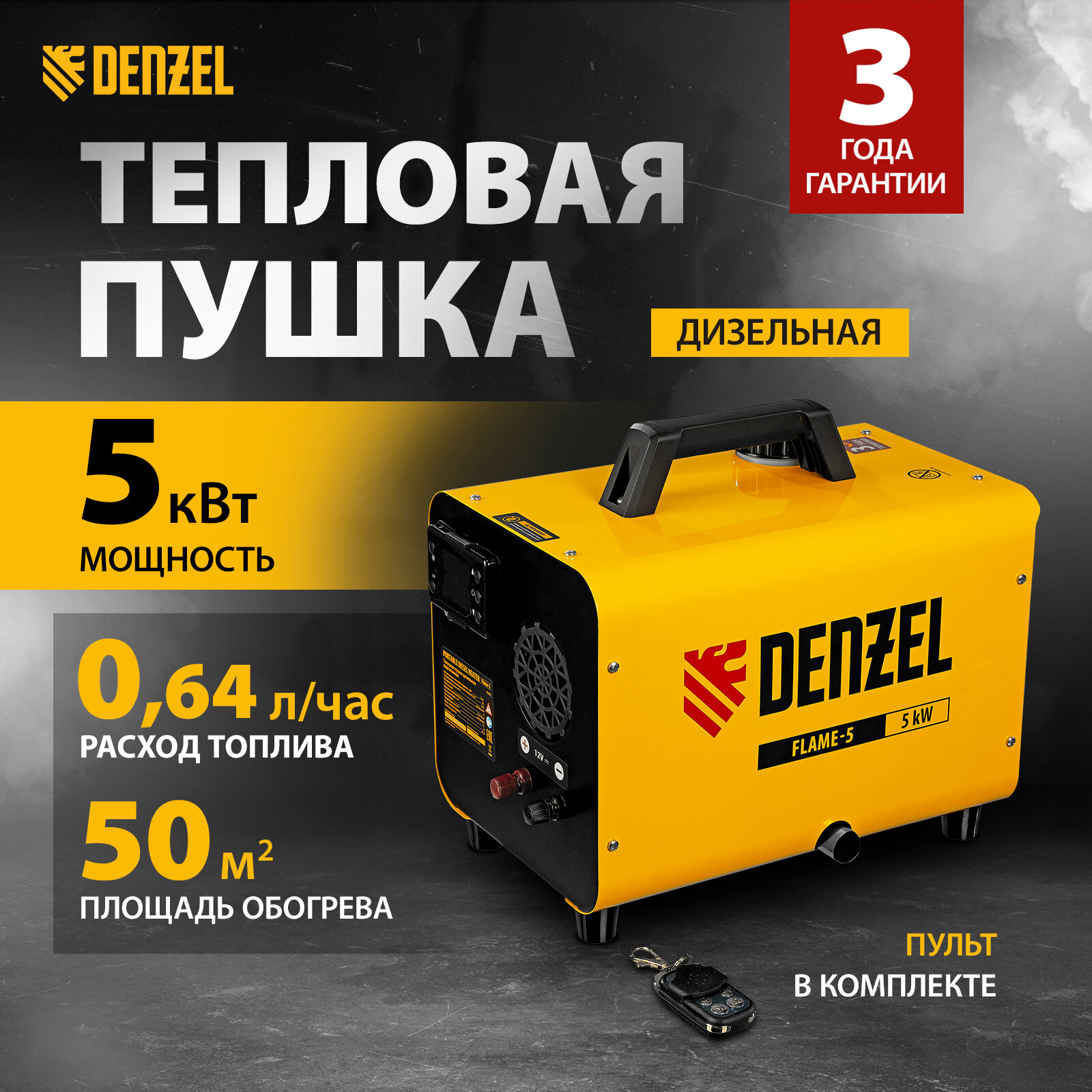 10 цен на Дизельная тепловая портативная пушка Denzel Flame-5, 5кВт, 300м3/ч, непр. наг, циф. терм. 96495