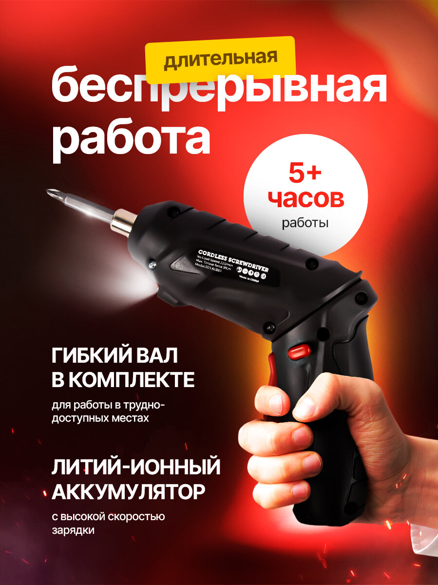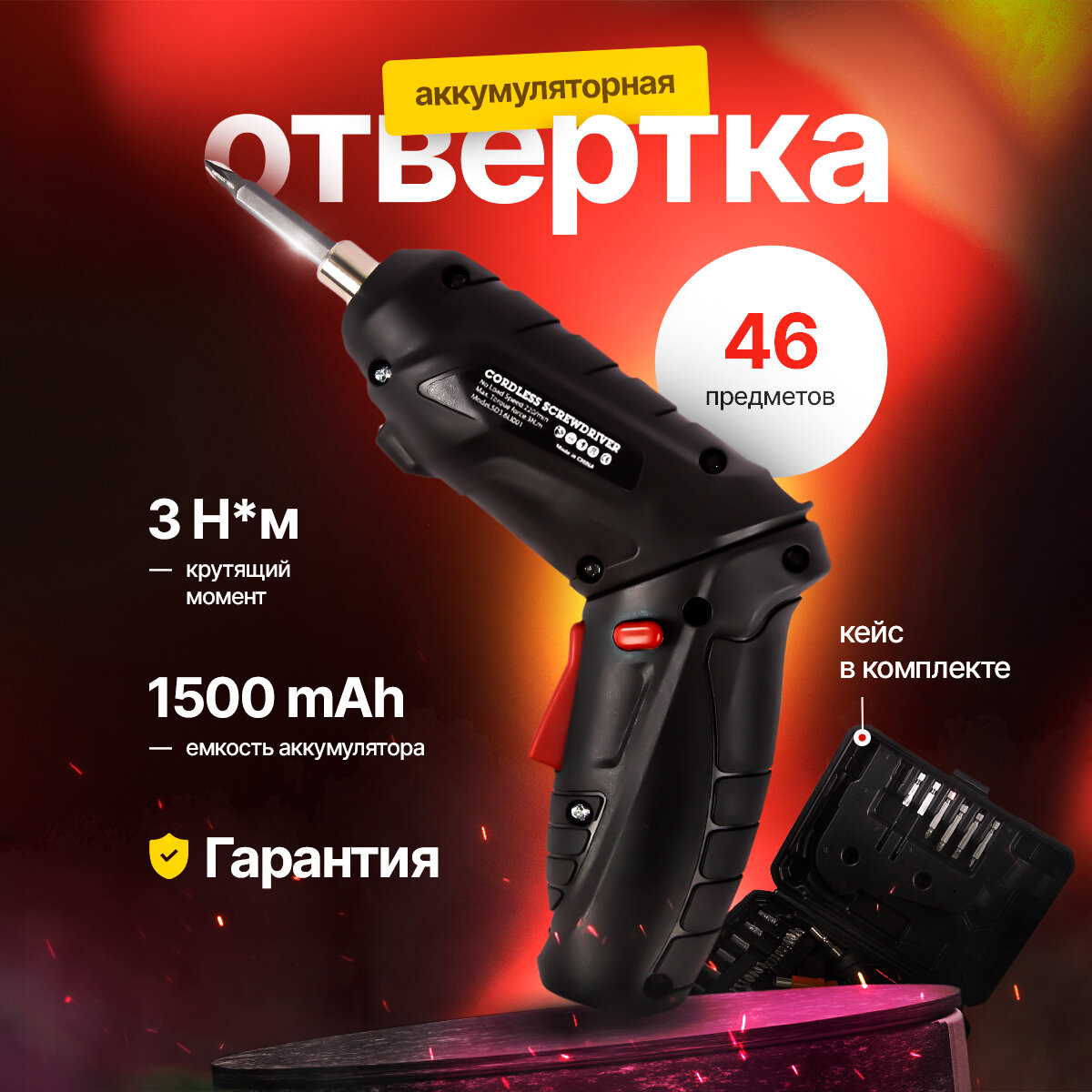 Аккумуляторная электрическая отвертка с насадками 47 шт. информация:
