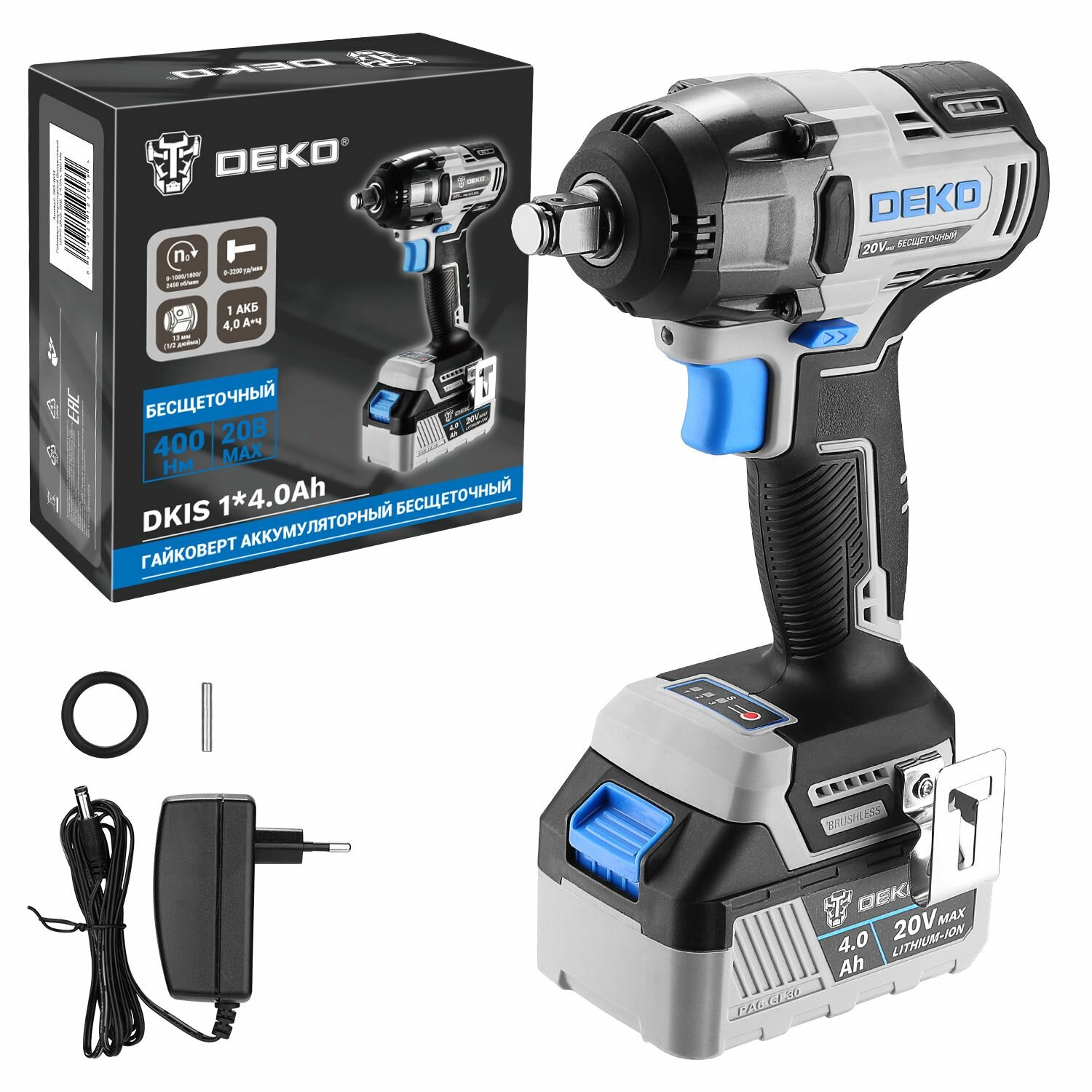 Гайковерт аккумуляторный бесщеточный DEKO DKIS, 20В, 1*4.0Ач, 400нМ 063-4034 информация: