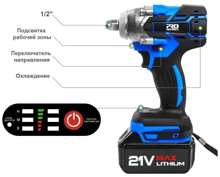 Отзывы на Гайковерт бесщеточный ударный PROSTORMER 21V-3Ач 320 Нм (комплект без аккумулятора и блока питания)
