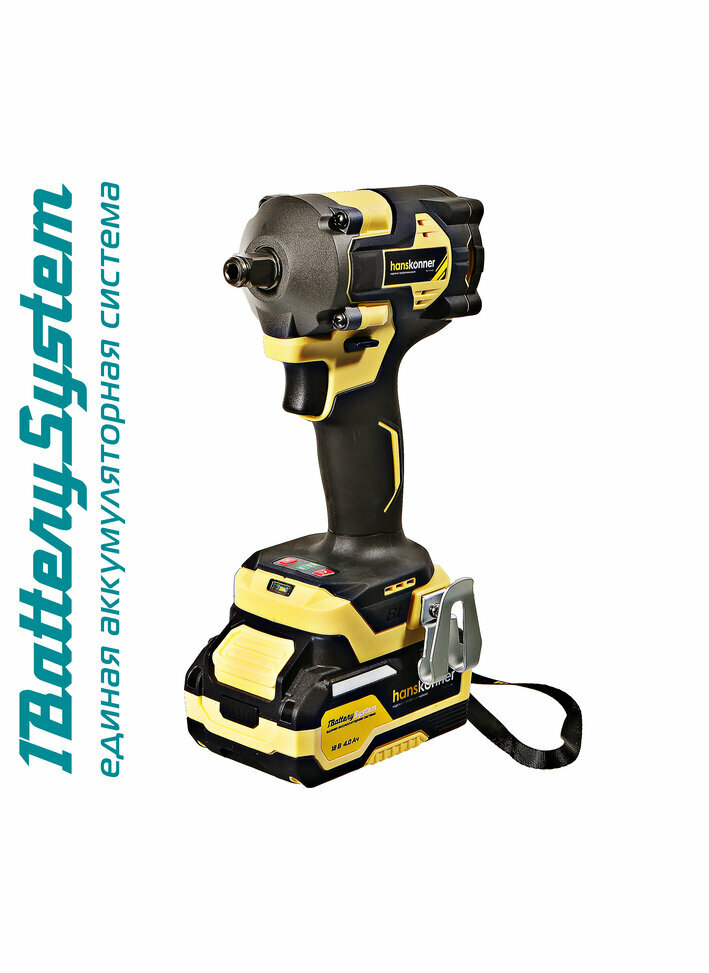 Аккумуляторный ударный гайковерт Hanskonner HCD20420BLC 1BatterySystem (18 В, 420Нм, 1/2, 2 скор, 1x4.0Ач, кейс HS) информация: