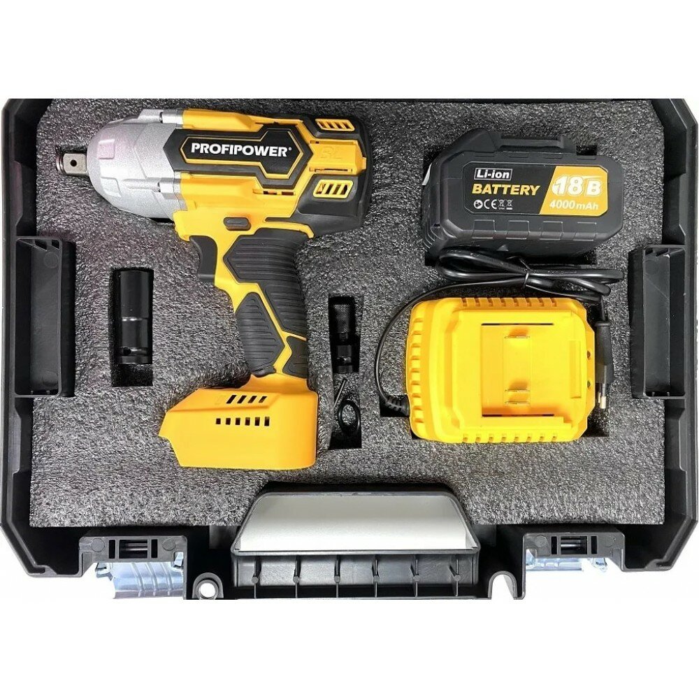 Аккумуляторный гайковерт бесщеточный ударный ProfiPower T-900N (Li-ion-1шт, 4.0Ач, 900Нм, ударная головка 17/19/21мм, З/У, в кейсе)