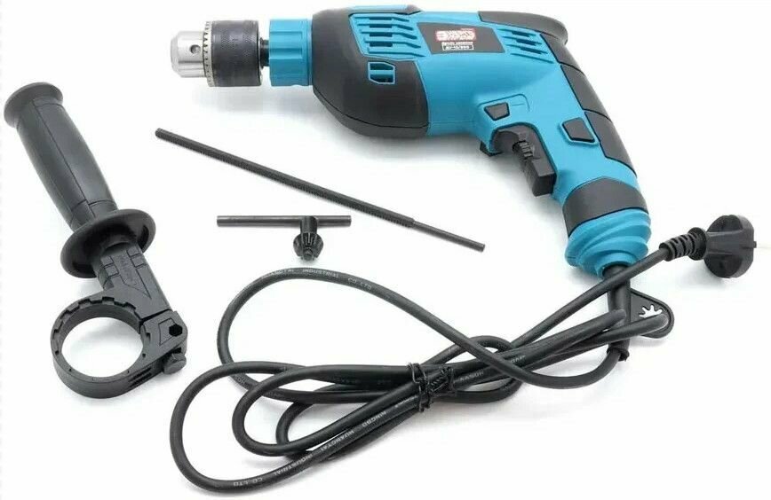 Дрель ударная, электродрель сетевая, дрель электрическая ударная, реверс, дополнительная рукоятка, работа от сети