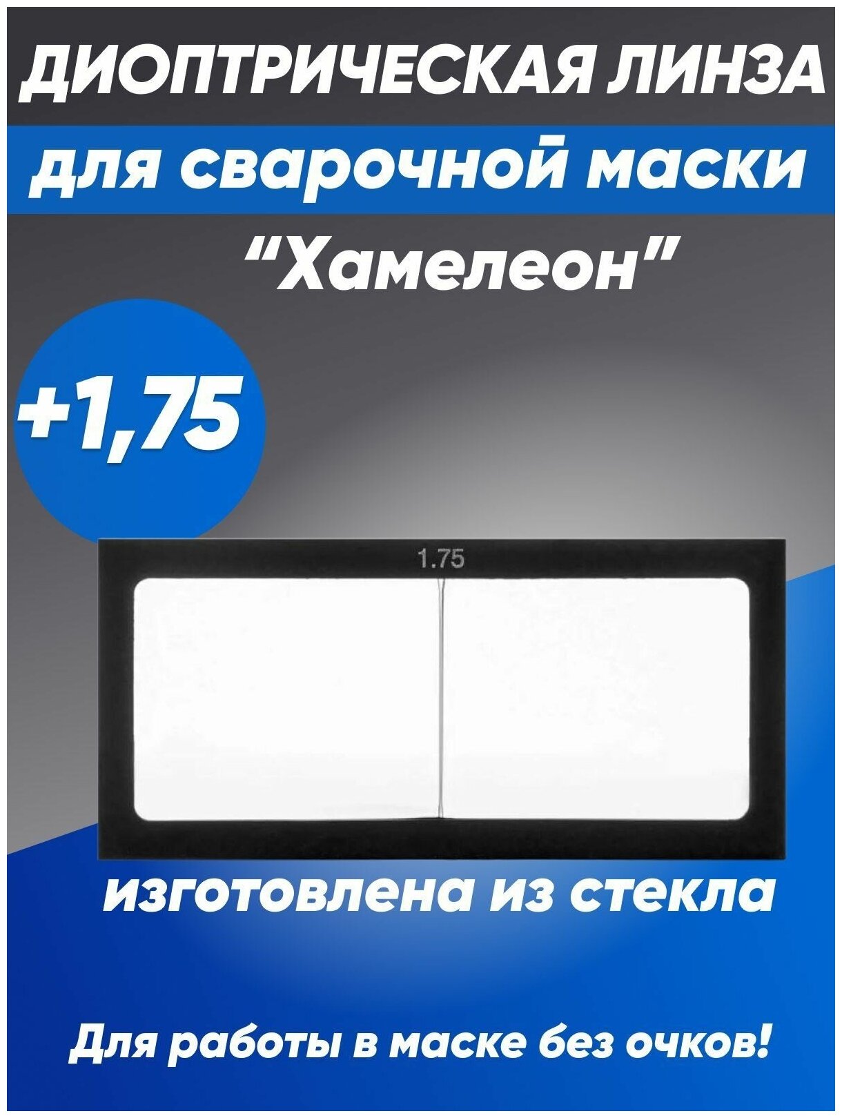 Линза диоптрическая стекло для сварочной маски "Хамелеон", +1,75 информация: