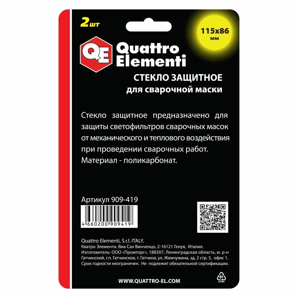 Стекло для сварочной маски QUATTRO ELEMENTI 115 х 86 мм, защитное, 2шт, поликарбонат, блистер, шт
