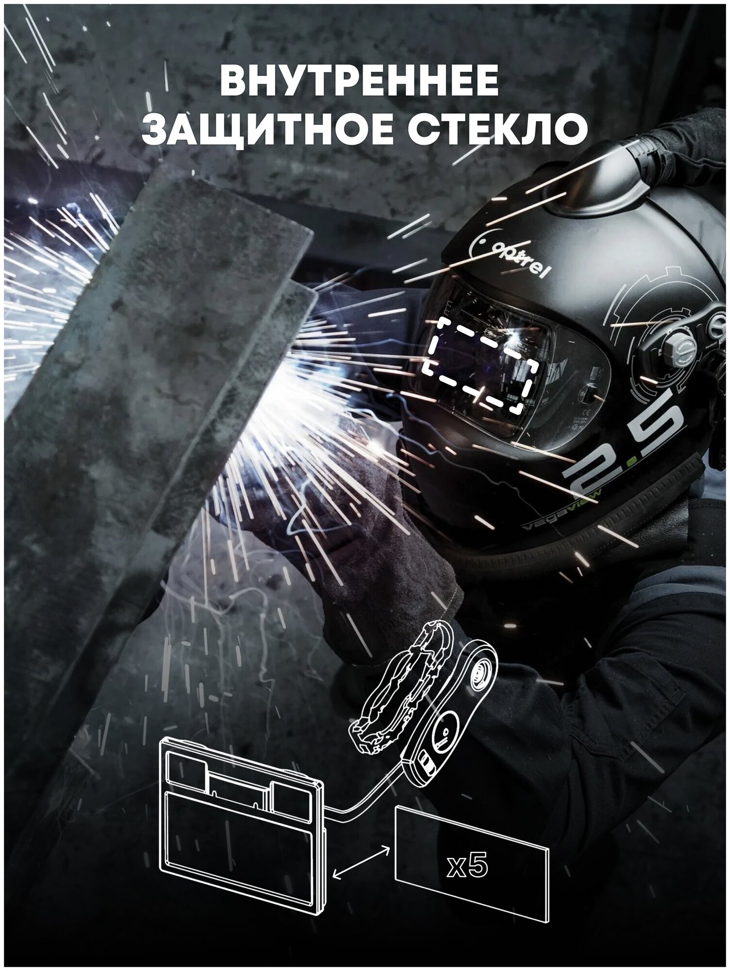Защитное стекло 114x89 (5шт) покровное, прозрачное для масок сварщика OPTIMA 4-13 Visor
