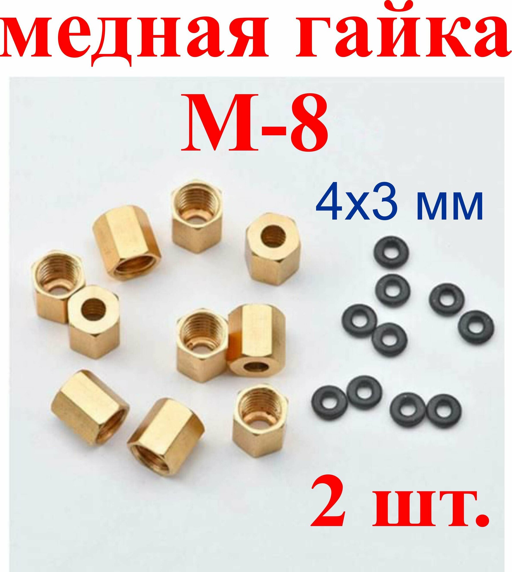 10 цен на Медная гайка М-8, с уплотнительным кольцом для демпфера для принтера,4х3 мм, 2шт.