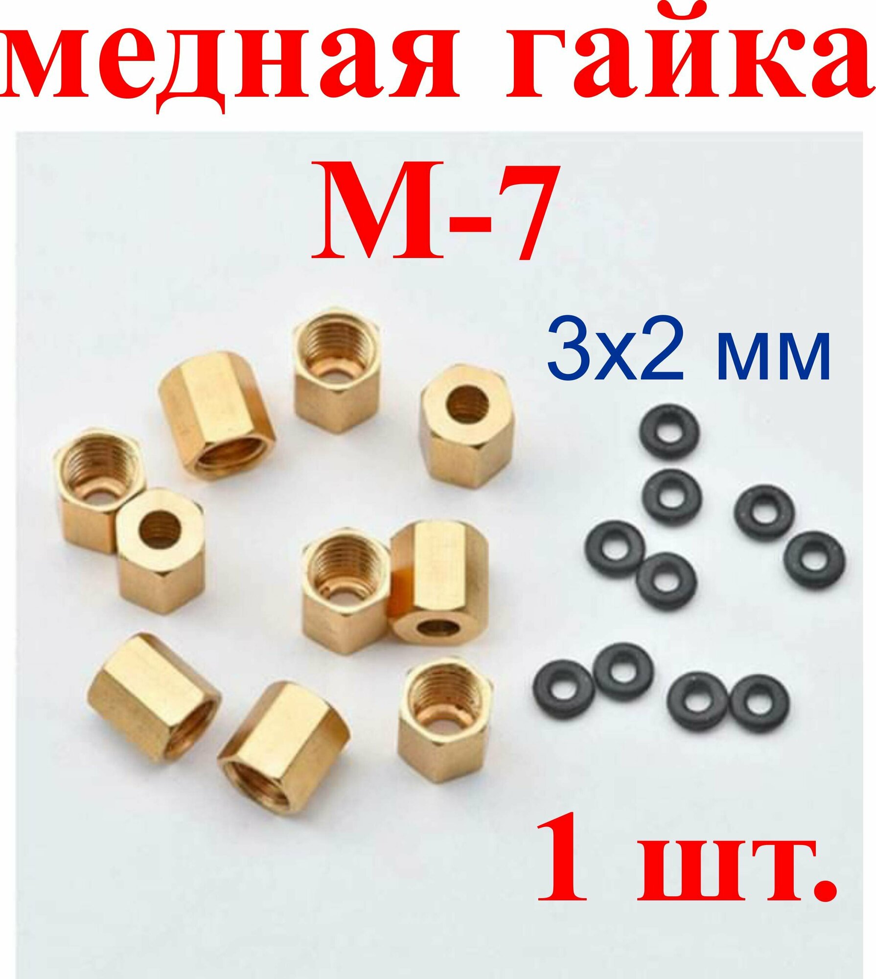 10 цен на Медная гайка М-7, с уплотнительным кольцом для демпфера для принтера,3х2 мм, 1шт.