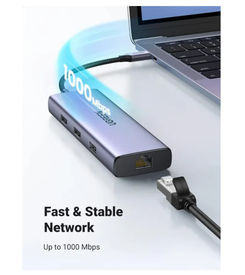 Отзывы на Док-станция UGREEN USB-C to 2*USB3.0+USB2.0+2*HDMI+RJ45 Gigabit+SD/TF+PD port Converter CM490 Gray (90119)