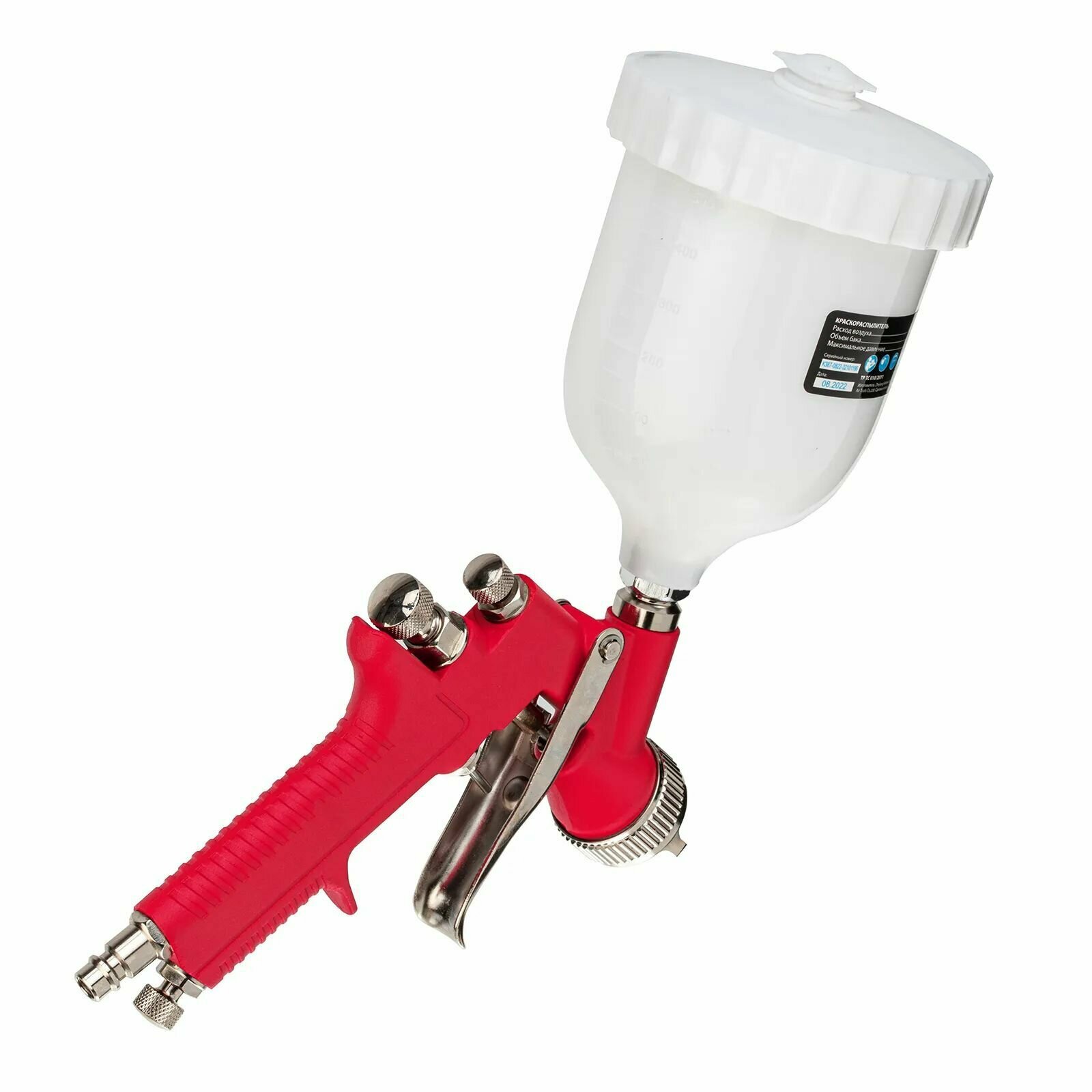 | Комплектация | Краскораспылитель с бачком Штуцер Сменное сопло диаметром 1,7 мм Руководство по эксплуатации и гарантийный талон Коробка |
