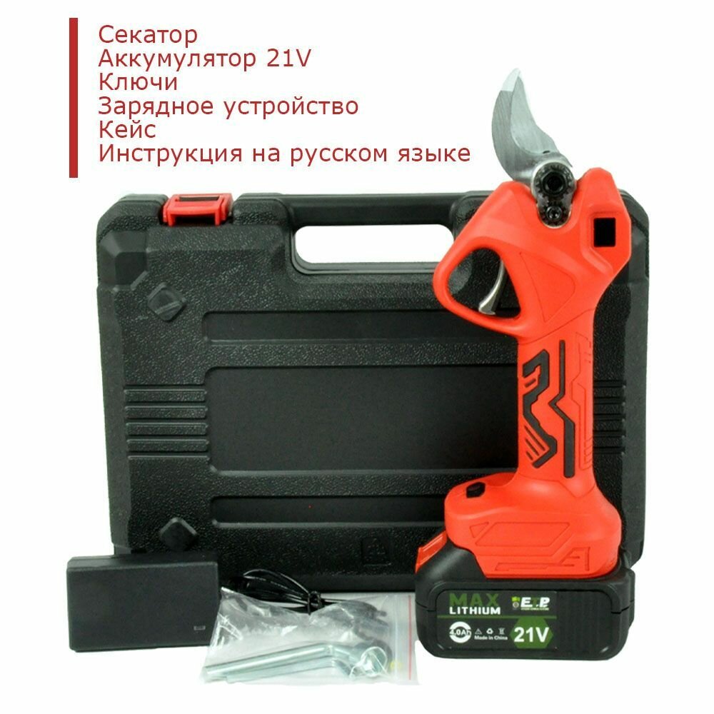 | Комплектация | Секатор АКБ Зарядное устройство Ключи 2шт Кейс Инструкция на русском языке |