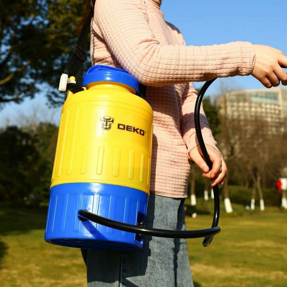 Опрыскиватель DEKO DKSP12, аккумуляторный, ранцевый, 14л, желтый [065-0951]