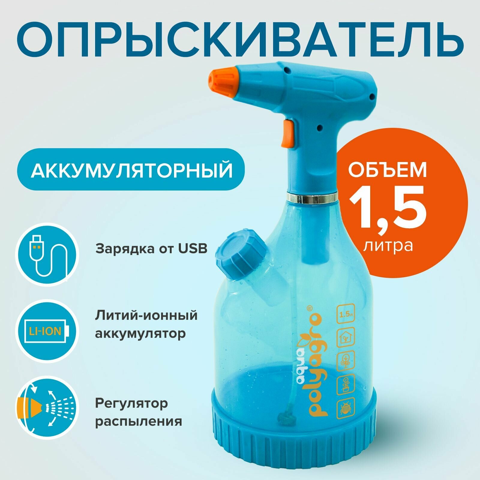 Опрыскиватель аккумуляторный садовый 1,5 л Polyagro информация: