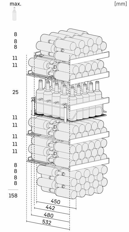 | Емкость винного шкафа, бут. | 158 |