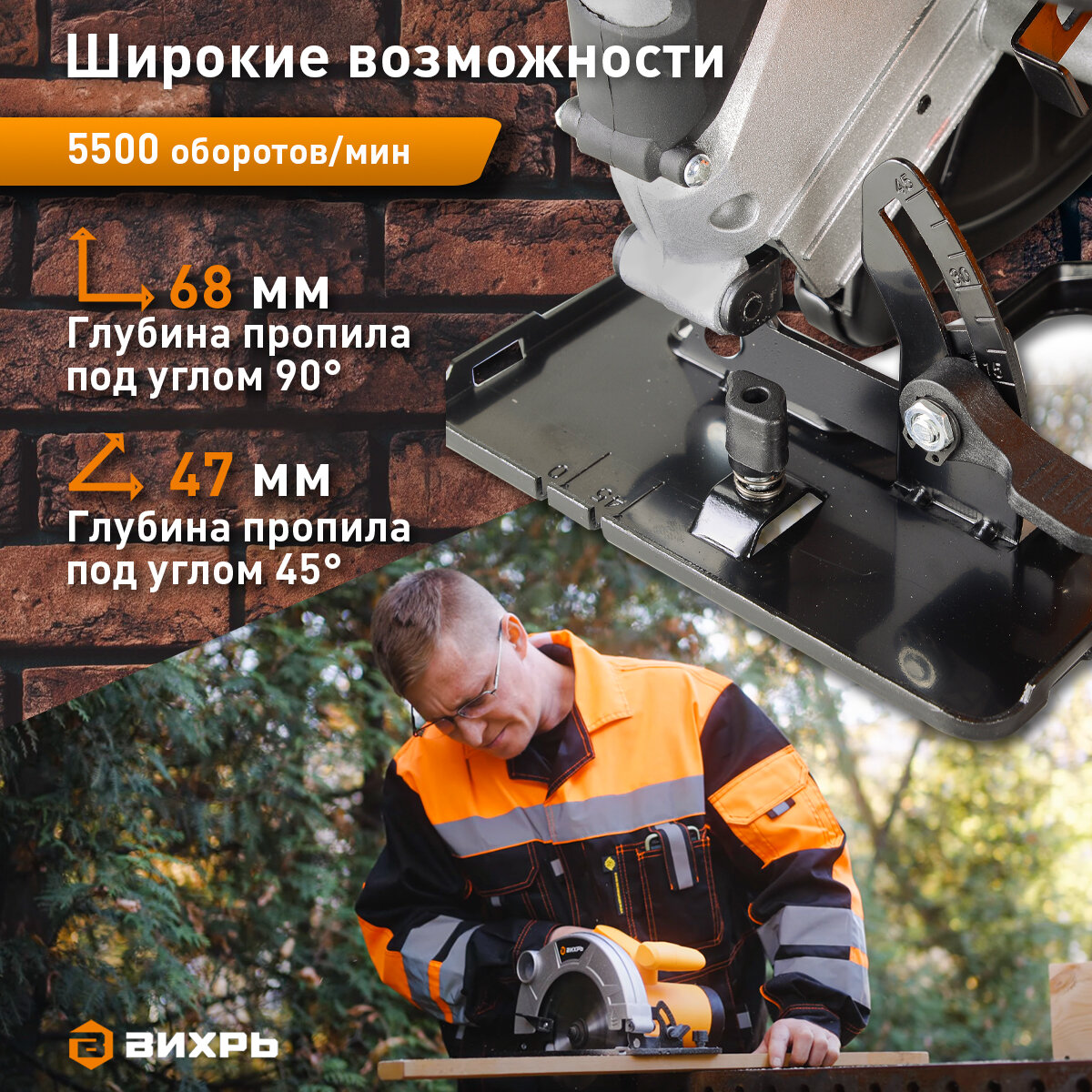 Отзывы на Дисковая пила Вихрь ДП-1,8 MPEX (1800 Вт, 5500 об/мин, диск – 190 мм)