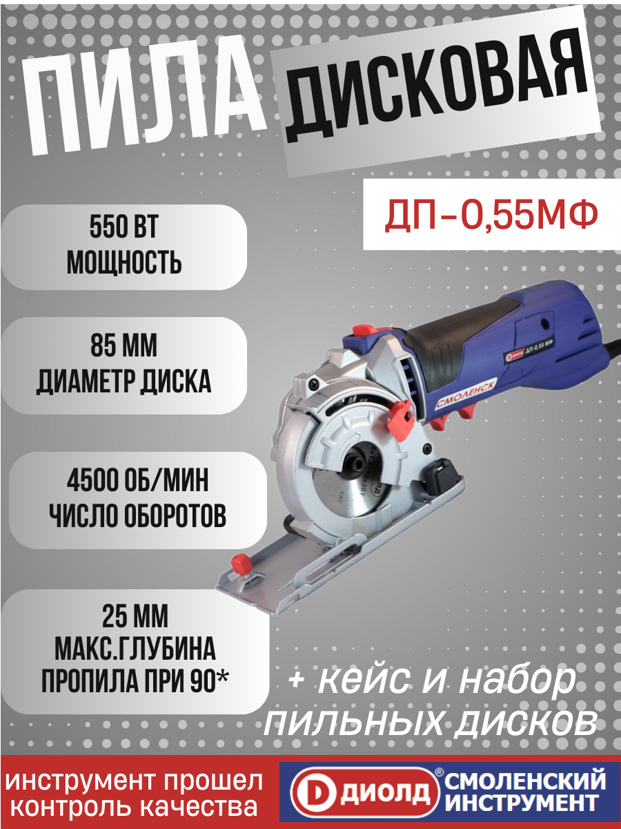 Пила дисковая многофункциональная диолд ДП-0,55 МФ, 550 Вт, 4500 об/мин, с комплектом дисков, в кейсе, производитель Россия информация: