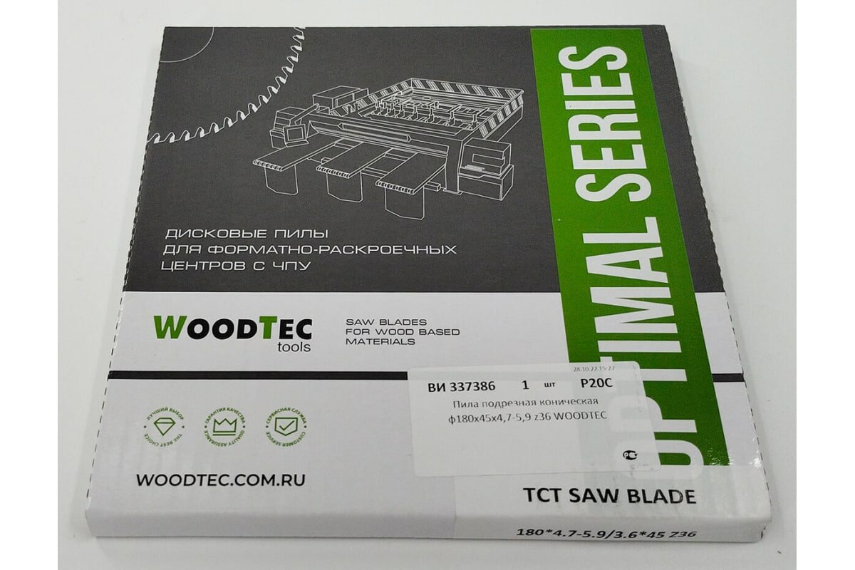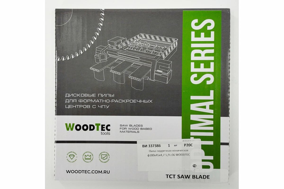 Woodtec Пила подрезная коническая ф180x45x4,7-5,9 z36 ВИ 337386 информация: