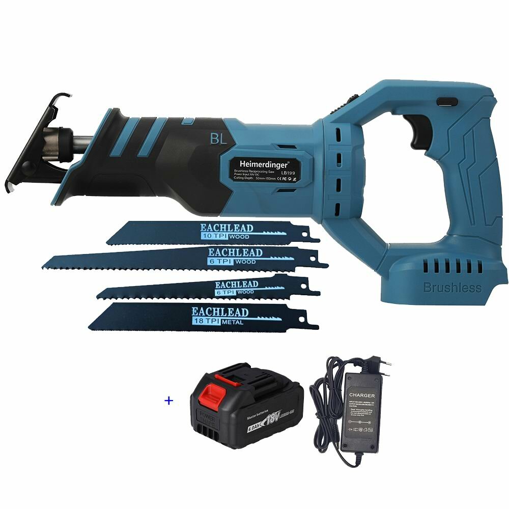 Бесщеточная сабельная пила с питанием от литиевой батареи Heimerdinger 18 В, с одной батареей 4,0 Ач информация: