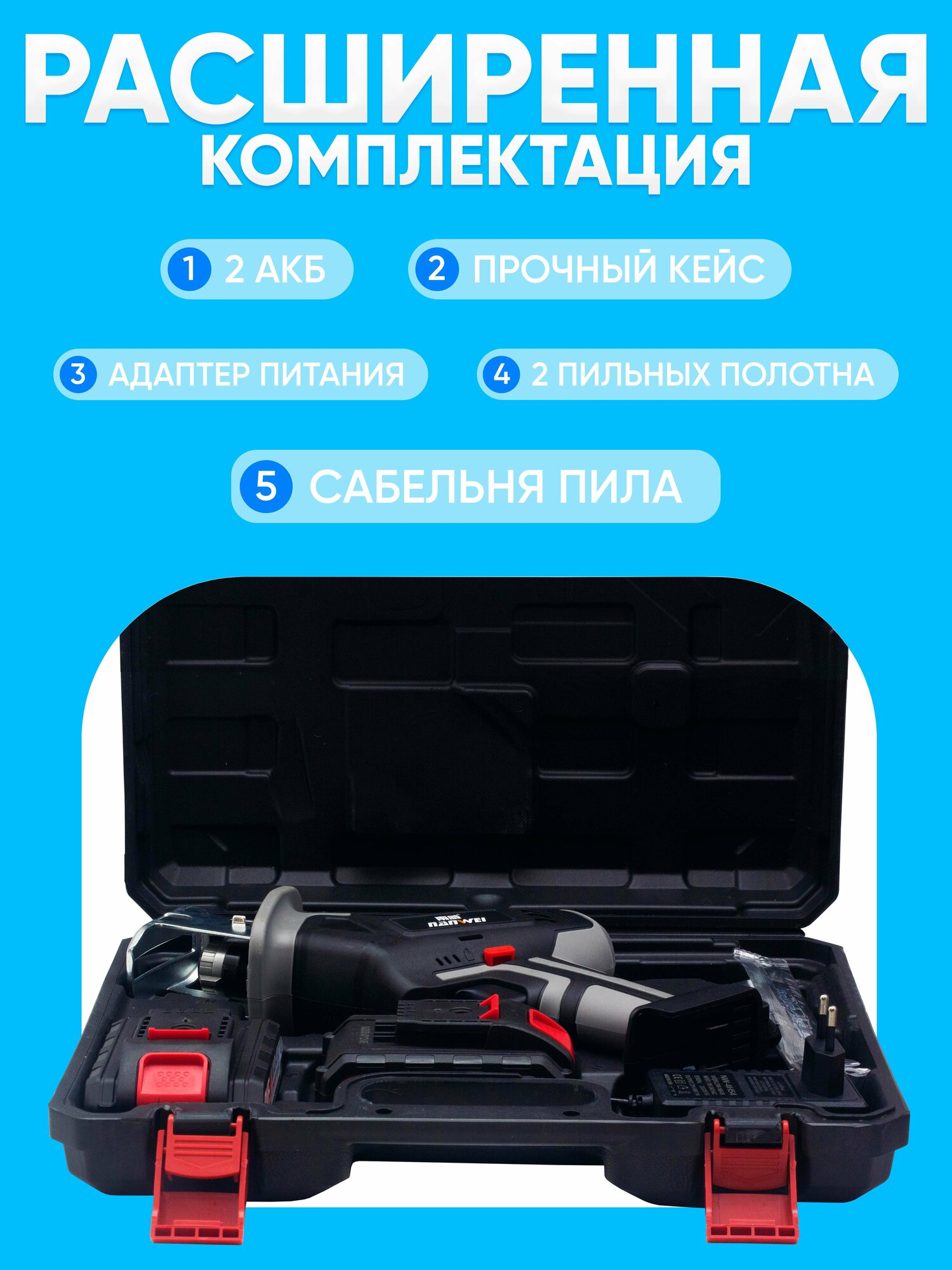 YAOTO BS 48Vf Аккумуляторная ручная сабельная пила, 21В, кейс + 2 Li-ion АКБ 2 Ач, электропила для сада