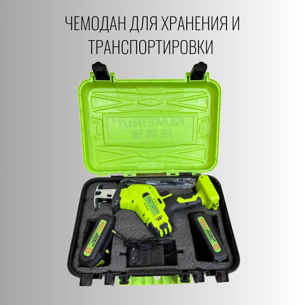 Пила сабельная электрическая с 2 Li-Ion аккумуляторами и 4 пилками / Аккумуляторная электропила для резки пластика, металла, деревьев и т.п информация: