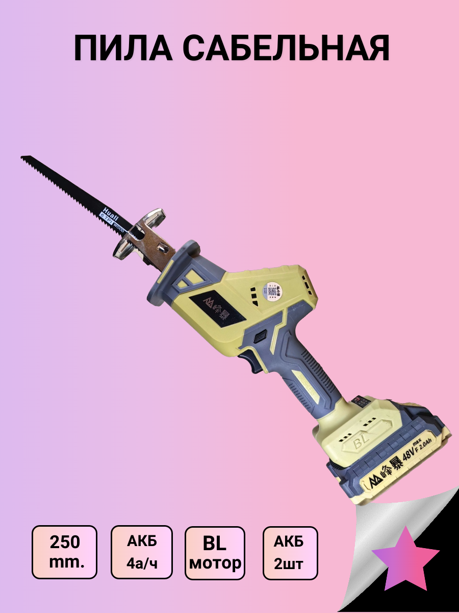 YAOTO BS 48Vf Аккумуляторная ручная сабельная пила, 21В, кейс + 2 Li-ion АКБ 2 Ач, электропила для сада