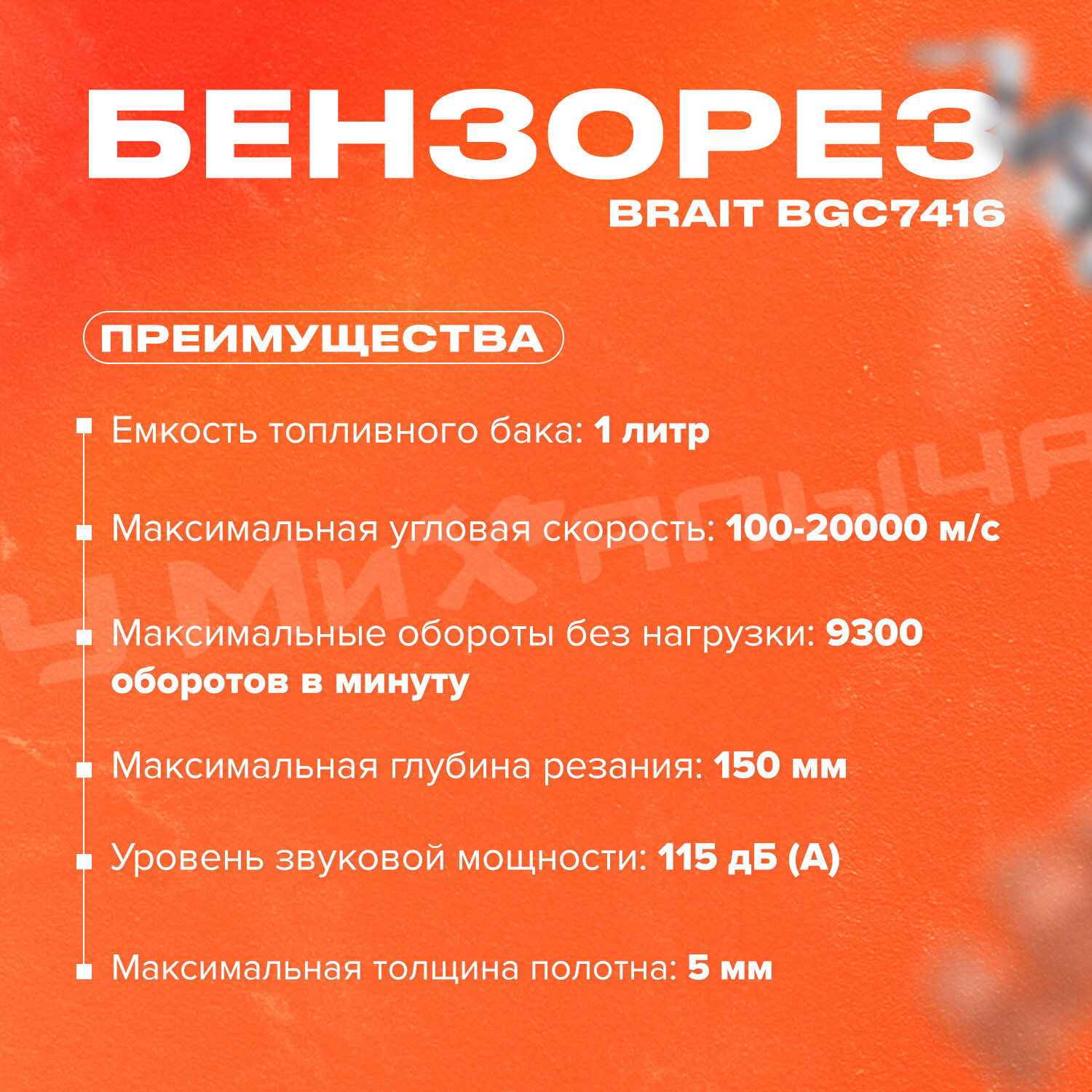Бензорез BRAIT BGC7416, 3,5 кВт, 4,8 л.с., 400 мм информация: