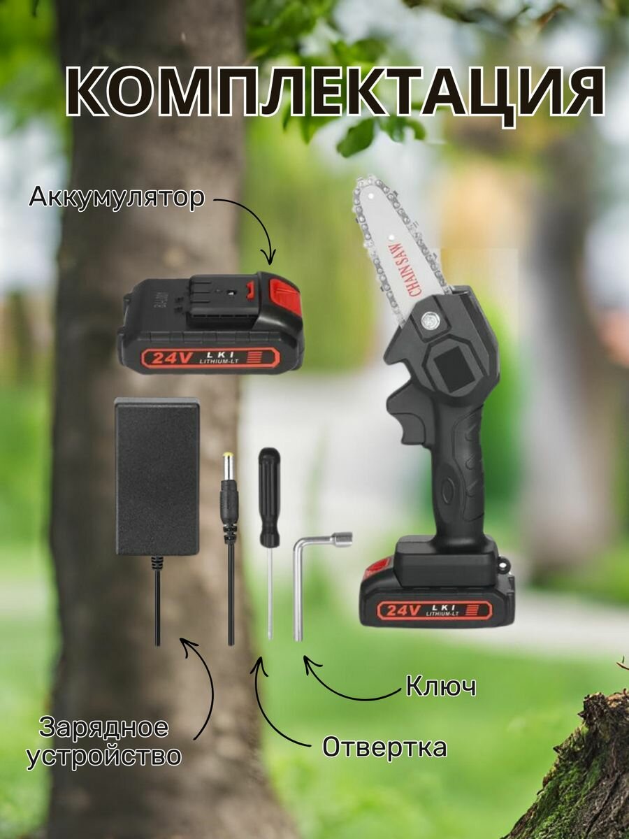 Пила аккумуляторная цепная 24Вт один аккумулятор Li-ion 2000 mAH