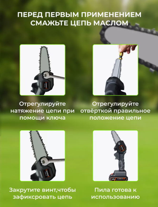 Аккумуляторная мини-пила цепная, 24 В информация: