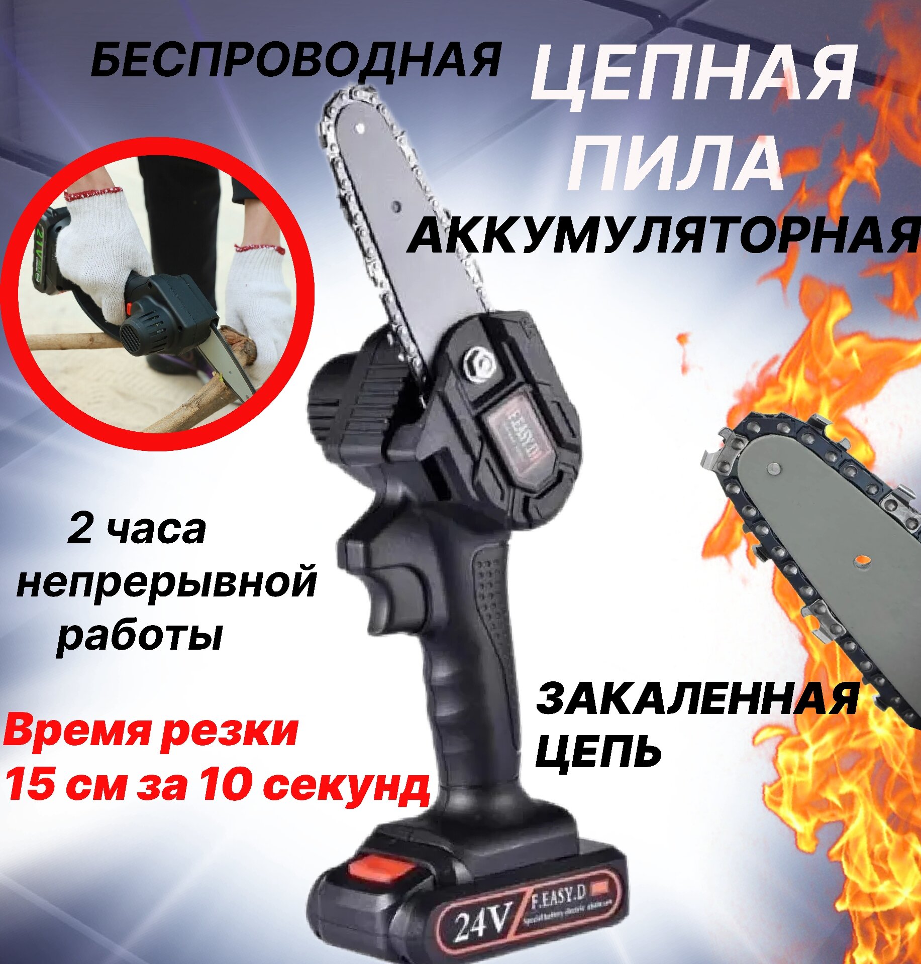 Отзывы на Цепная аккумуляторная пила / электропила 24V / мини пила для строительства и садоводства /кусторез сучкорез