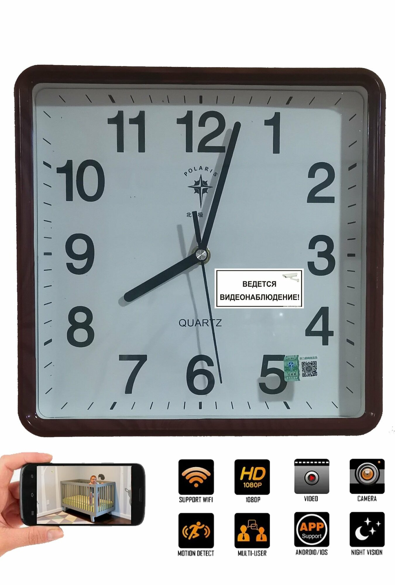 WiFi видеокамера с часами информация: