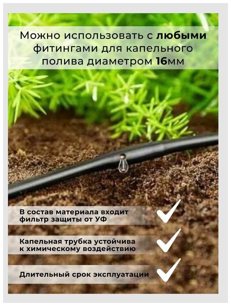 Трубка капельного полива 16мм (20см) 2,0 л/ч (бухта 50м) Irritime черная информация: