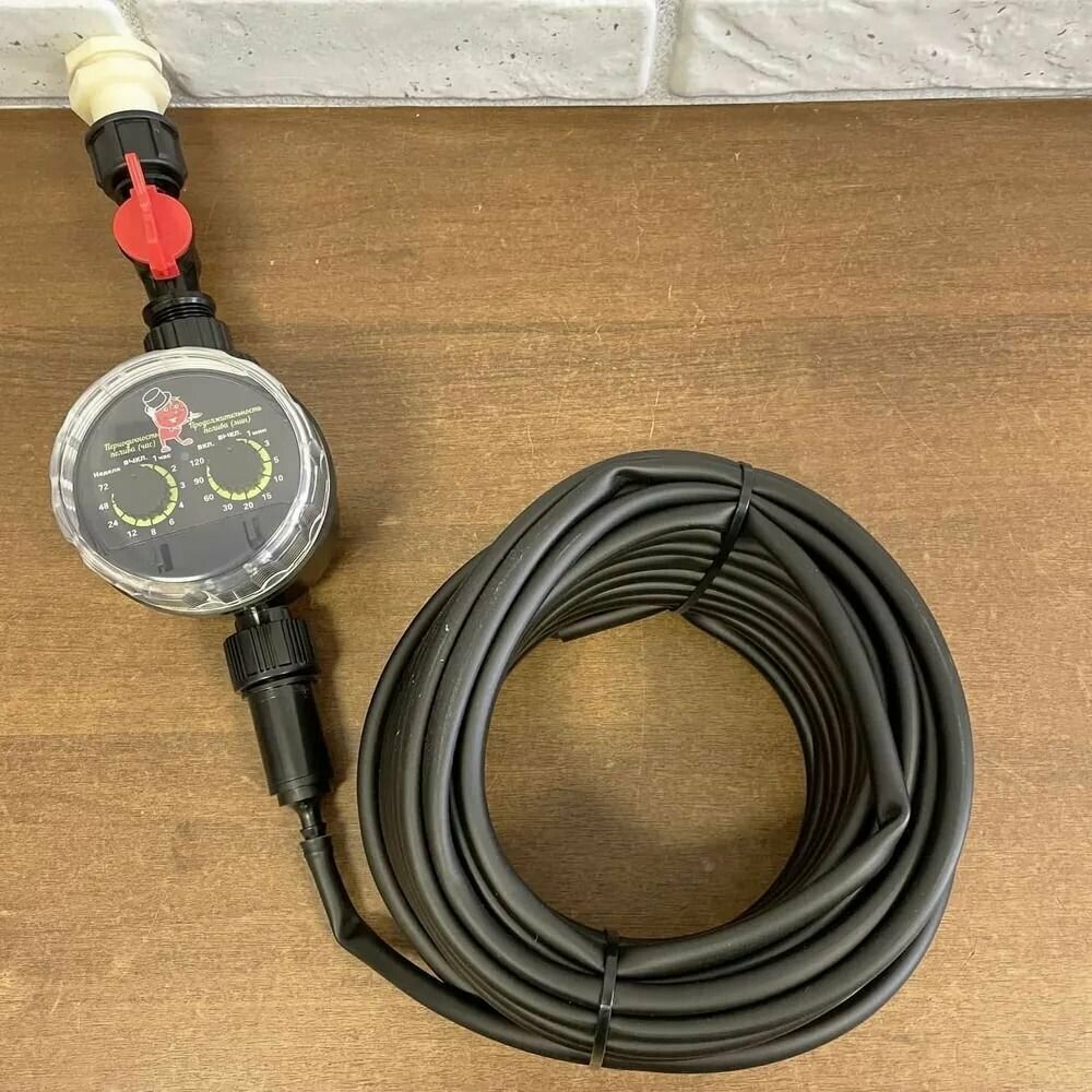 | Комплектация | Электронный шаровый таймер - 1 шт; Врезка для бочки - 1 шт; Шланг магистральный 7/9 мм - 18 м; Шланг для капельниц 4/6 мм - 17 м; Капельницы – 60 штук; Разветвитель – 30 шт.; Переходник - 1 шт; Кран - 1 шт; Тройник с заглушками – 1 шт; Заглушка подающего шланга -3 шт; Инструкция по эксплуатации - 1 шт. |