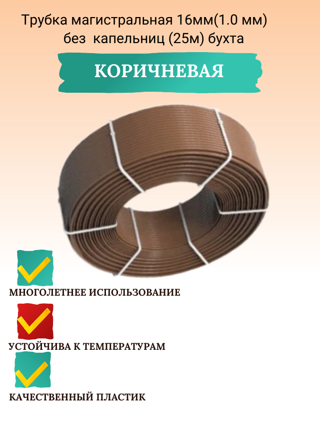 Трубка магистральная 16мм (1,0 мм) Коричневая без капельниц(25м) бухта информация: