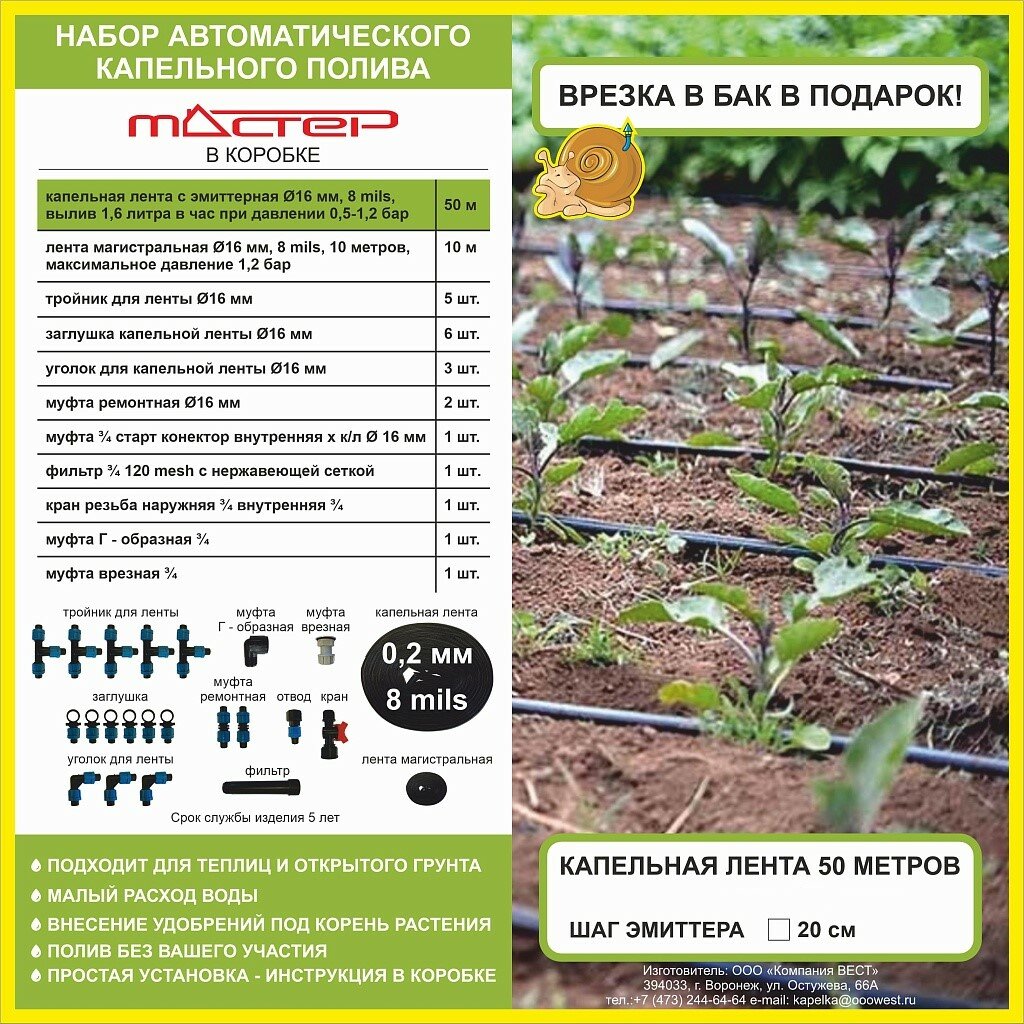 Набор капельного полива Мастер 50м информация:
