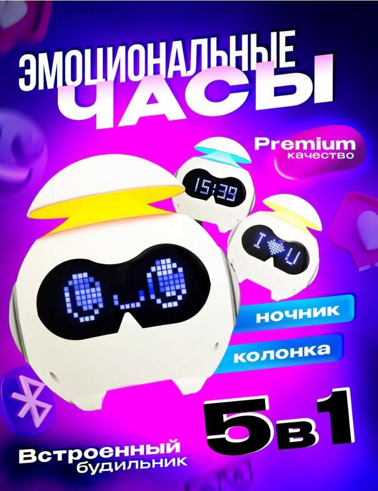 Ночник эмоциональные часы будильник 5в1/ настольные часы-будильник с колонкой/ электронные часы LEMIL информация: