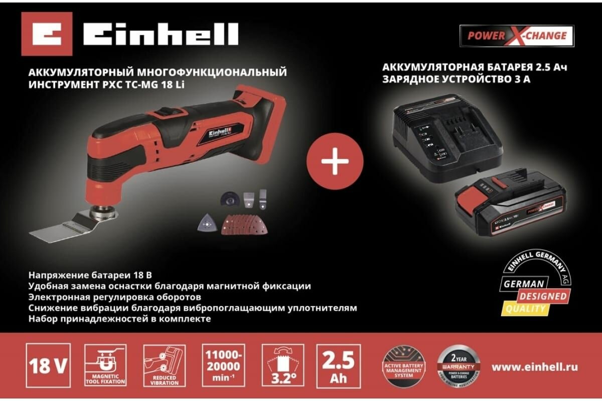 Einhell Многофункциональный аккумуляторный инструмент pxc tc-mg 18 li + 1 акк. pxc 2.5ач 18в + зу 3а 4465170SET информация: