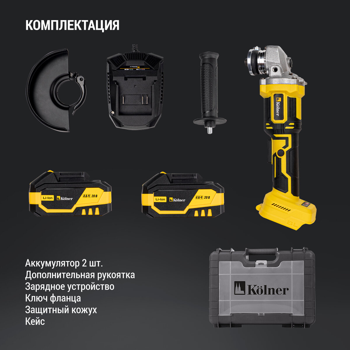 10 цен на Машина шлифовальная угловая аккумуляторная Kolner KCAG 125/20BLVC