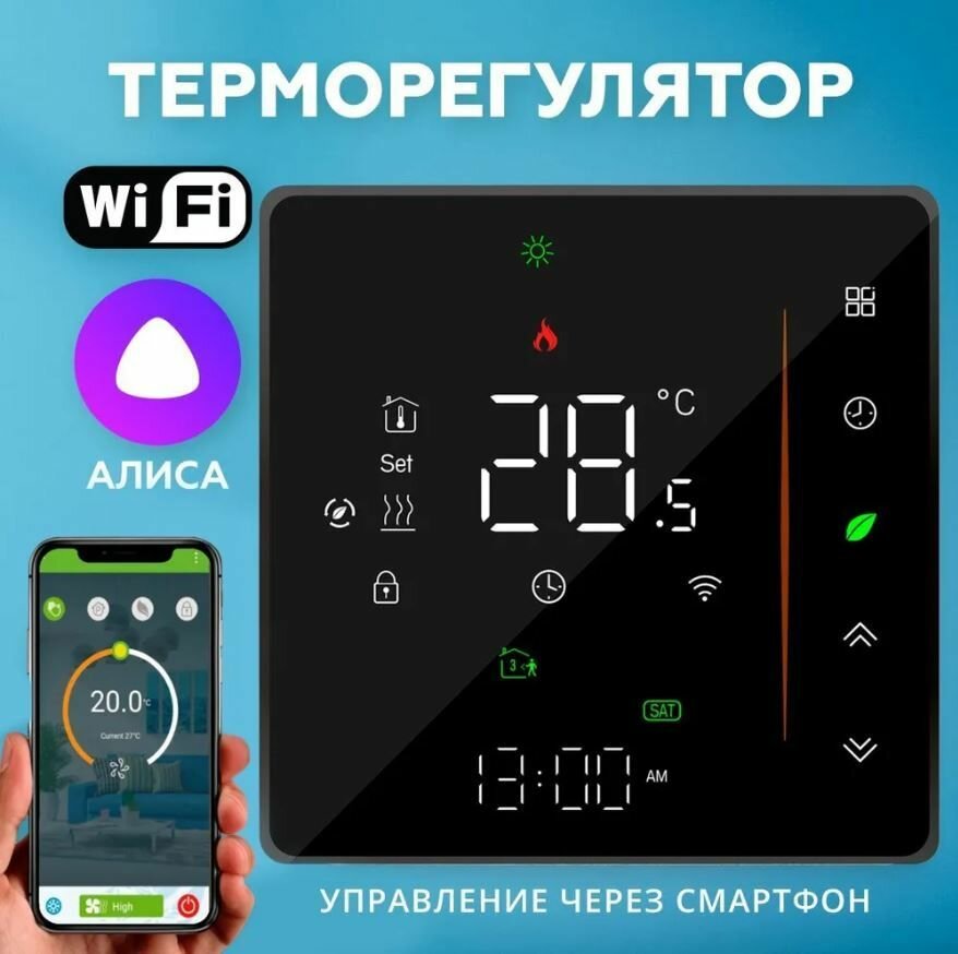 Терморегулятор для теплого пола WL M77 WIFI Black, программируемый термостат с WiFi , цвет: Чёрный информация: