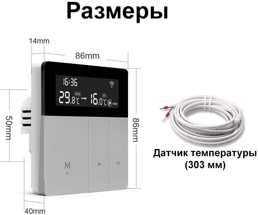 Терморегулятор для теплого пола с Wi-Fi / Сенсорный программируемый регулятор температуры BixtonHeat TGP Wi-Fi BGray / Термостат информация: