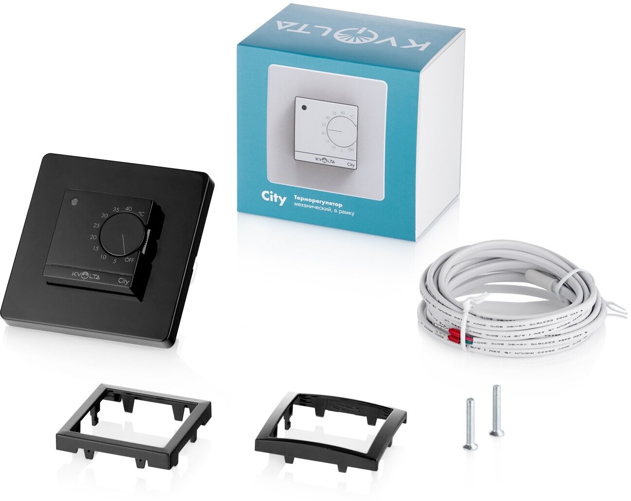 Терморегулятор для тёплого пола механический чёрный Kvolta City информация: