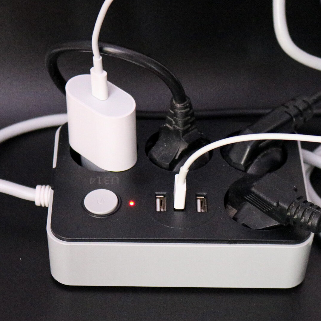 Отзывы на U314 сетевой удлинитель для домашнего офиса с 4 евро-розетками и 3 USB, 1.8 м, 10 A, 2кВт.
