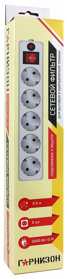 Сетевой фильтр Гарнизон 5 розеток 0,5 м белый информация: