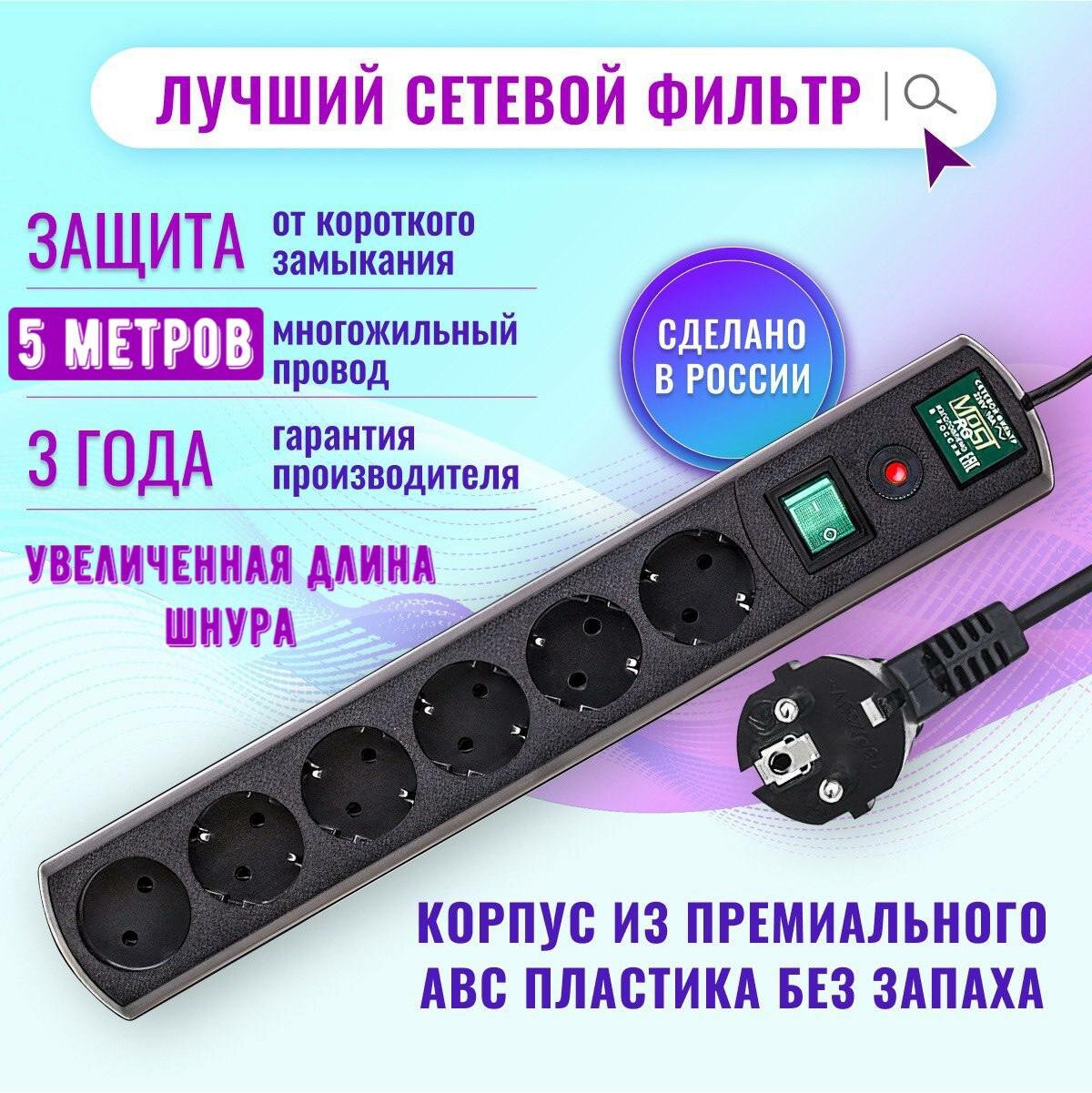 10 цен на Сетевой фильтр с защитой удлинитель с предохранителем Most LRG, 5 метров 2200Вт черный