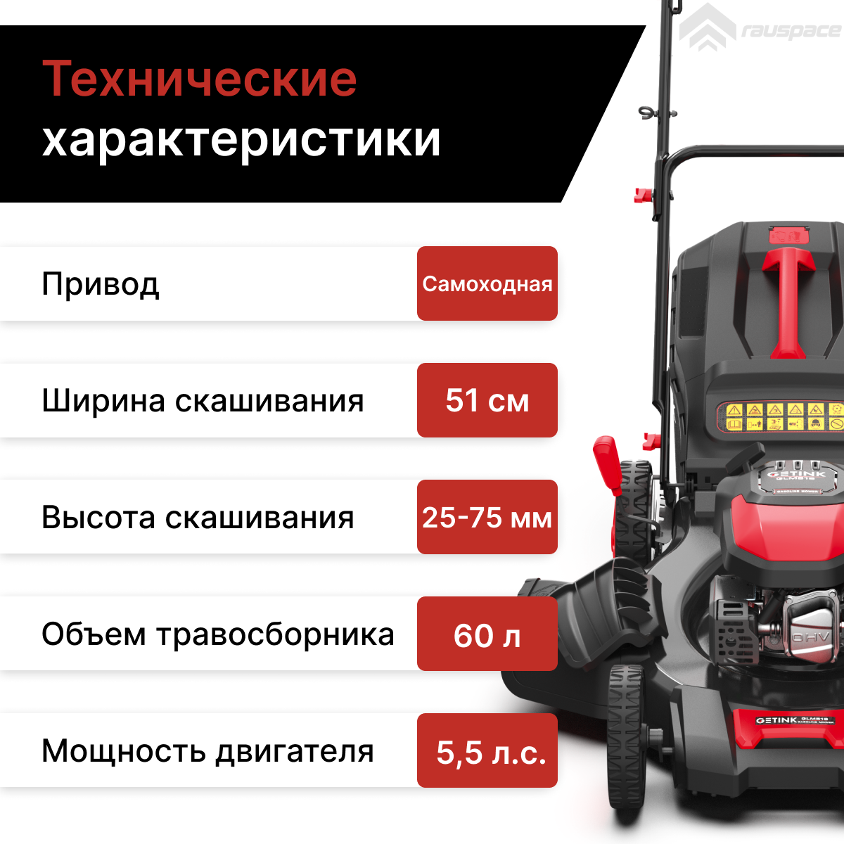 Бензиновая газонокосилка GETINK GLM51S информация: