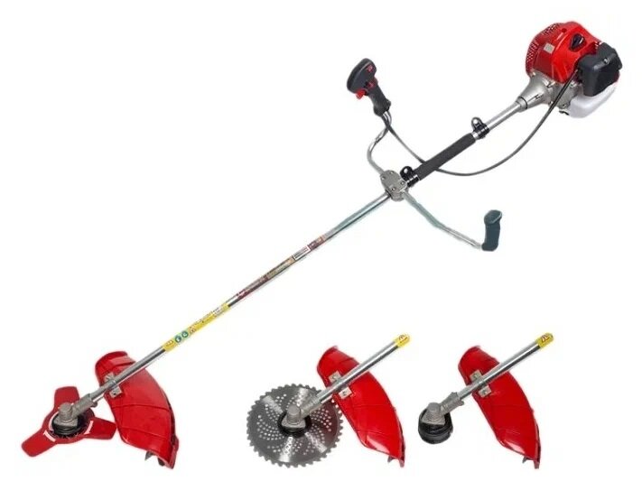 | Подробная комплектация | полуавтоматическая триммерная шпуля с леской - 1 шт; 3-х лопастной нож Swissnox - 1 шт, фреза 40Т(победитовые напайки) - 1 шт; емкость с делениями для смешивания топлива; наплечный ранцевый ремень; ключи и напильник. |