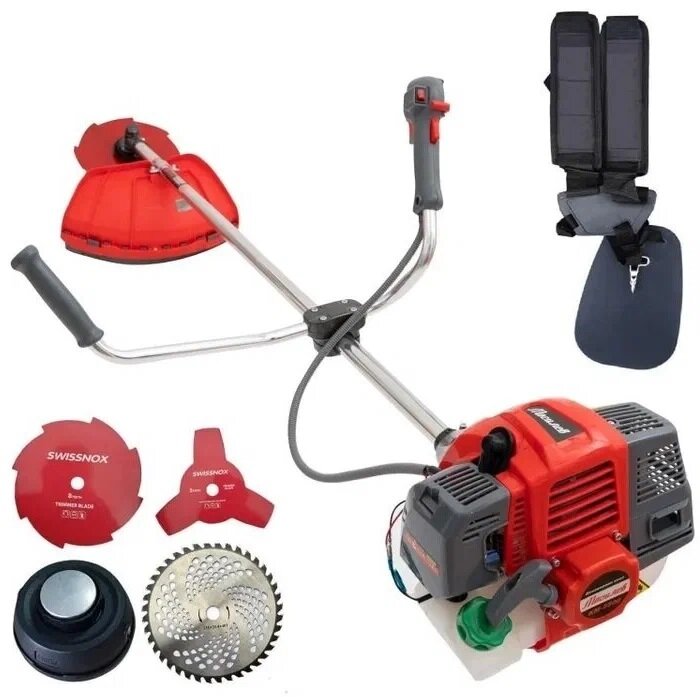 Подробная комплектация | Лопастные ножи Swissnox (3Т, 8Т) - 2 шт. Диск c победитовыми напайками (40Т) - 1 шт. Триммерная головка (пластиковая) - 1 шт. Плечевой ремень с защитой ранцевый - 1 шт. Набор инструментов в фирменной сумке - 1 компл., Инструкция - 1 шт. Гарантийный талон - 1 шт. |