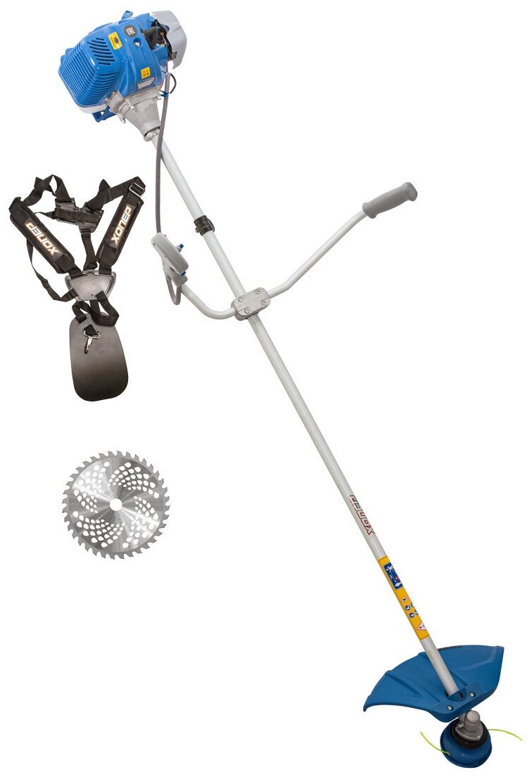 Бензиновый триммер (бензокоса) Хопер - 043 Фермер New (2,5 л. с, 40 зубовый нож, катушка с леской, ремень)