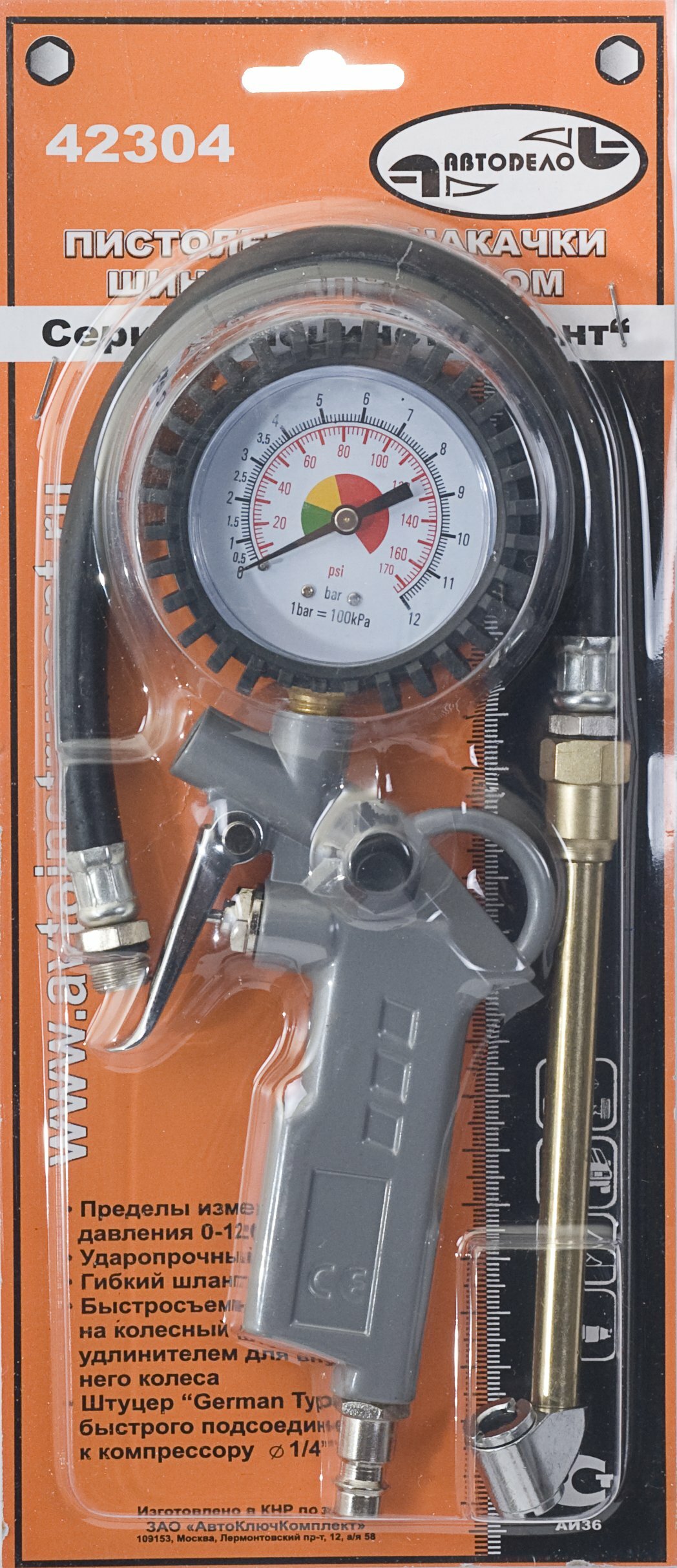 Пистолет для подкачки шин с манометром 10 атм грузовой АвтоДело информация: